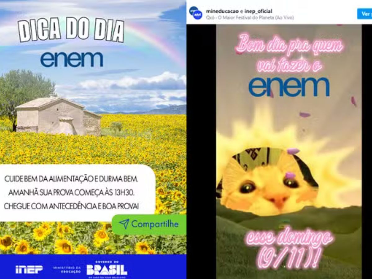 Ao postar gifs de ‘bom dia’ e de gatinhos, Inep deu spoiler do tema da redação do Enem 2025, brincam alunos